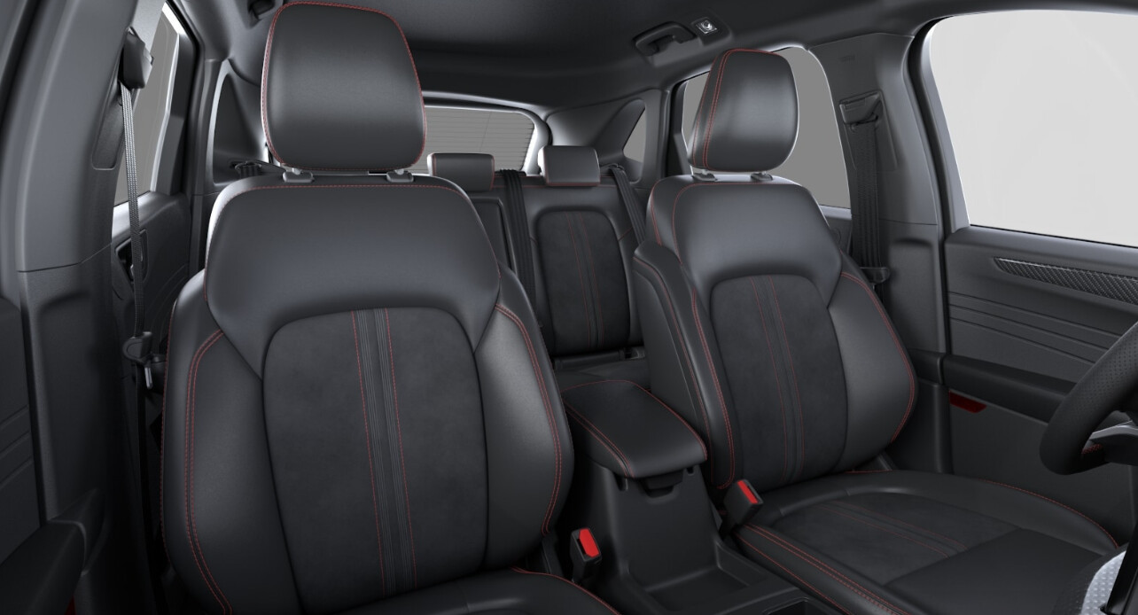 ◾Przednie fotele – tapicerka częściowo skórzana Nova/Neosuede z elementami skóry ekologicznej Cuir i przeszyciami w