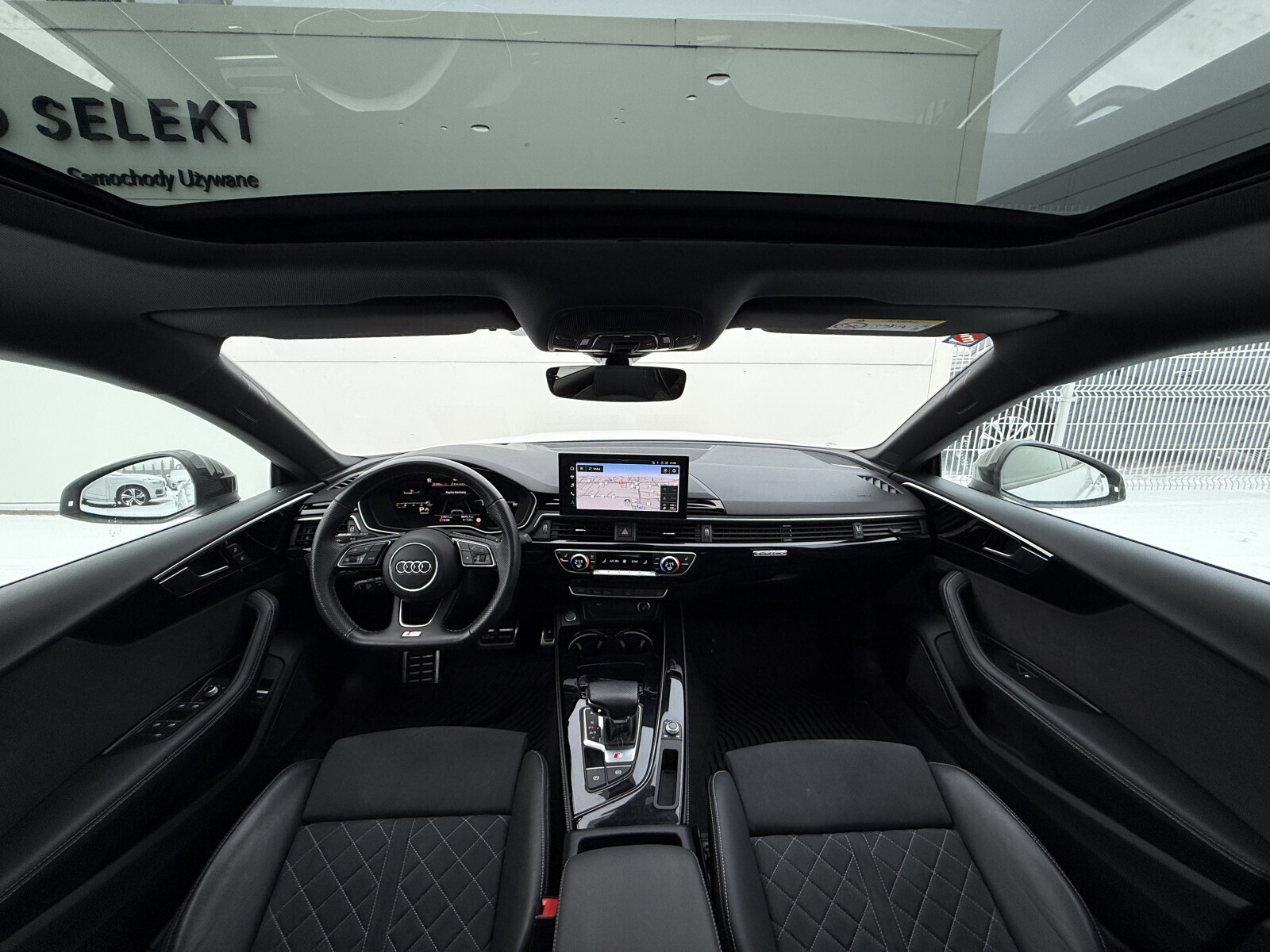 - Listwy progowe w przednich drzwiach ze wstawkami z aluminium z logo S, podświetlane