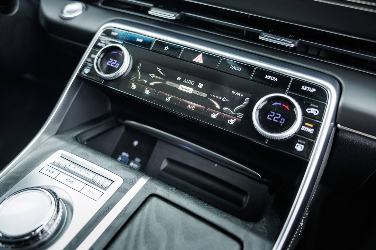 14,5-calowy wyświetlacz informacyjno-rozrywkowy z nawigacją i radiem DAB • Apple CarPlay i Android Auto • Genesis Connected Services •