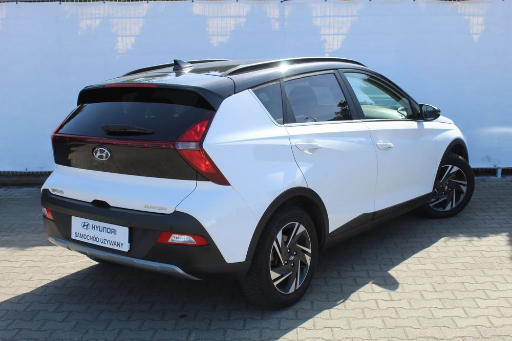 Hyundai Bayon w wersji Smart z pakietami 2T+WINTER+DESIGN w kolorze Polar White//Black Roof, samochód napędzany jest silnikiem benzynowym 3-cylindrowym 1.0 T-GDI o mocy 100KM i sprzężony jest z automatyczną skrzynią biegów oraz napędem 2WD. Prezentowany egzemplarz pochodzi z Polskiego salonu a dokładnie z naszego w Kaliszu i został wyprodukowany w 2021r. Pierwsza rejestracja 14.03.2022r.