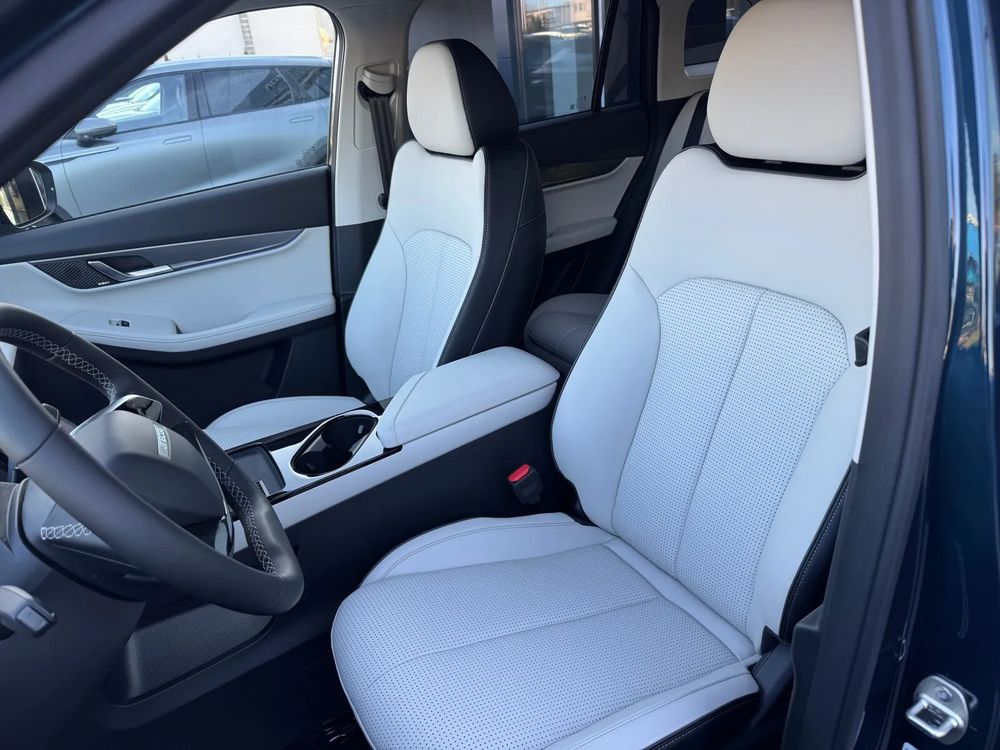 - Fotele przednie regulowane elektrycznie, z podgrzewaniem i wentylacją; tapicerka ze skóry ekologicznej.