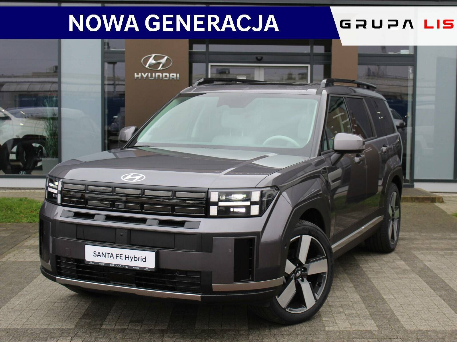 Auto Centrum Lis - autoryzowany dealer marki Hyundai w Kaliszu przedstawia ofertę na samochód Hyundai Santa Fe Najnowszej Generacji, wyposażonego w silnik hybrydowy o mocy 215 KM z automatyczną skrzynią biegów 6AT oraz napęd 4WD. 7os.