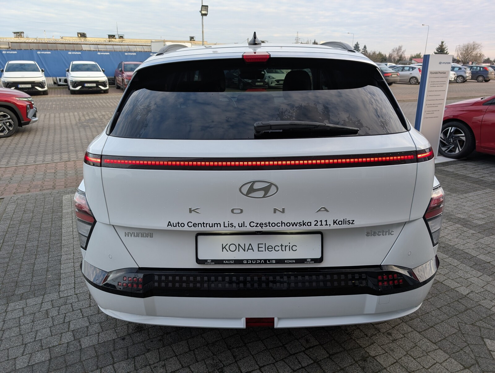 Auto Centrum Lis - autoryzowany dealer marki Hyundai w Kaliszu przedstawia ofertę na samochód KONA Nowej Generacji, wyposażonego w silnik elektryczny o mocy 218KM, połączony z bateria 65kWh i napędem na przednią oś.
