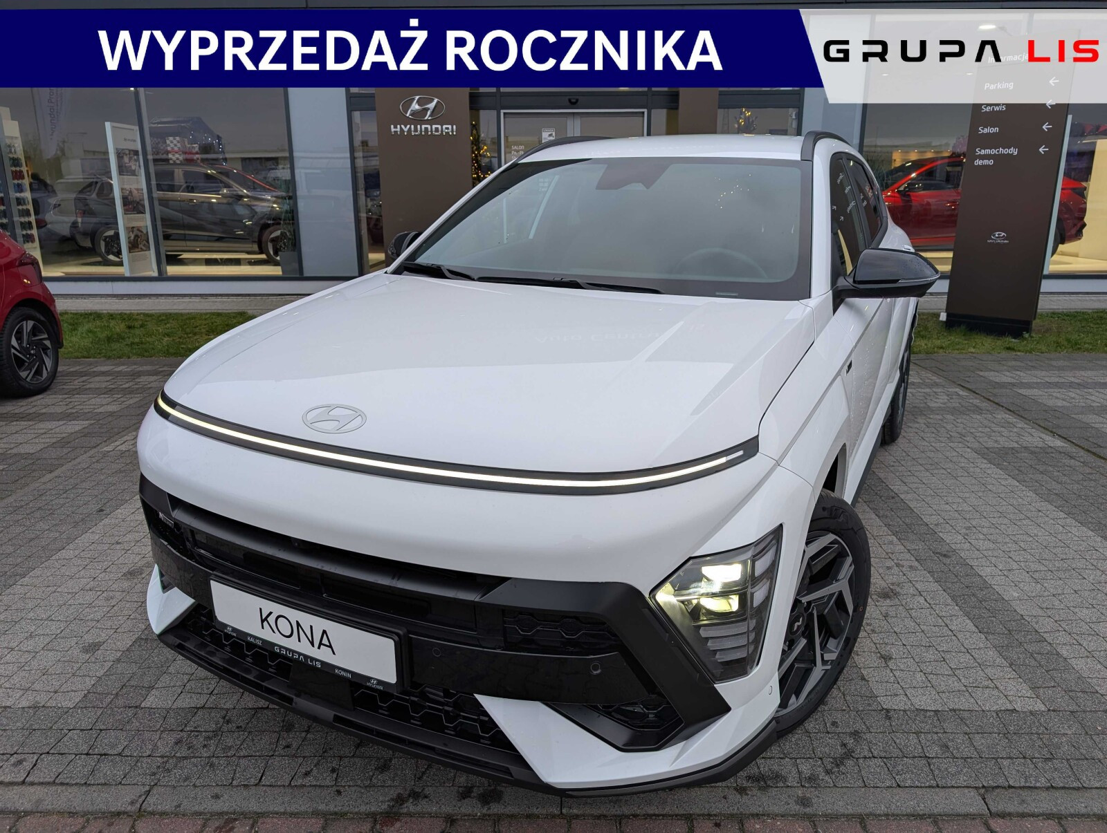 Auto Centrum Lis - autoryzowany dealer marki Hyundai w Kaliszu przedstawia ofertę na samochód Hyundai Kona Nowej Generacji, wyposażonego w silnik benzynowy o mocy 150KM z automatyczną skrzynią biegów 7DCT oraz napęd 2WD.