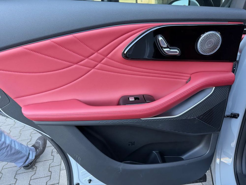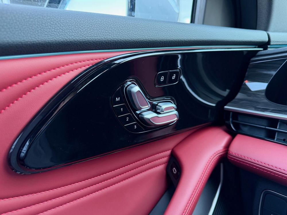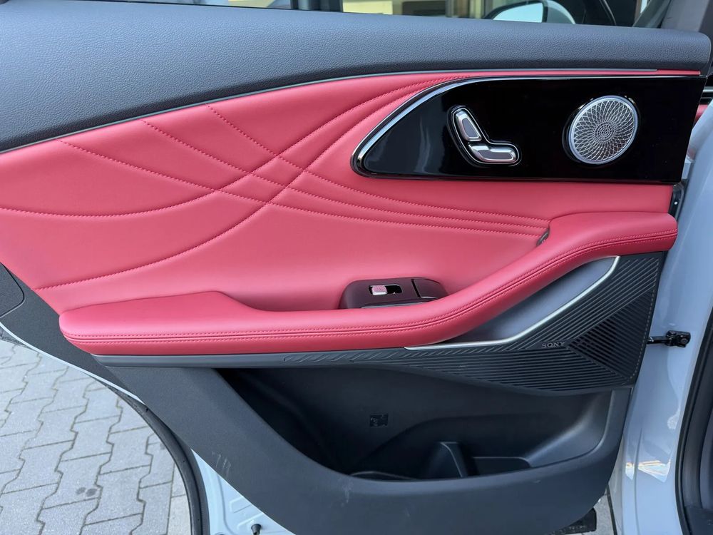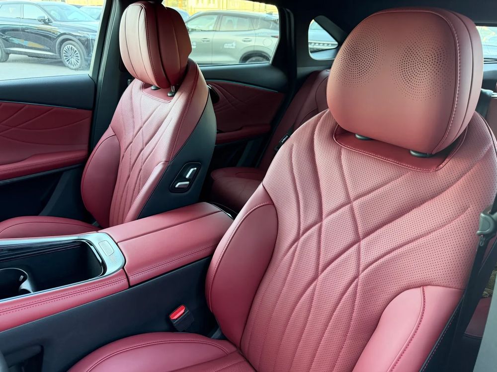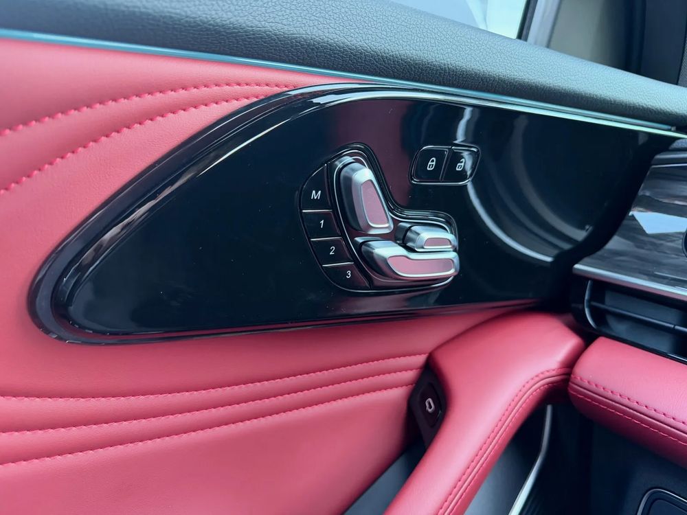 • Fotele przednie z elektryczną regulacją z funkcją podgrzewania, wentylacji i masażu oraz tapicerką ze skóry naturalnej w kolorze czerwonym