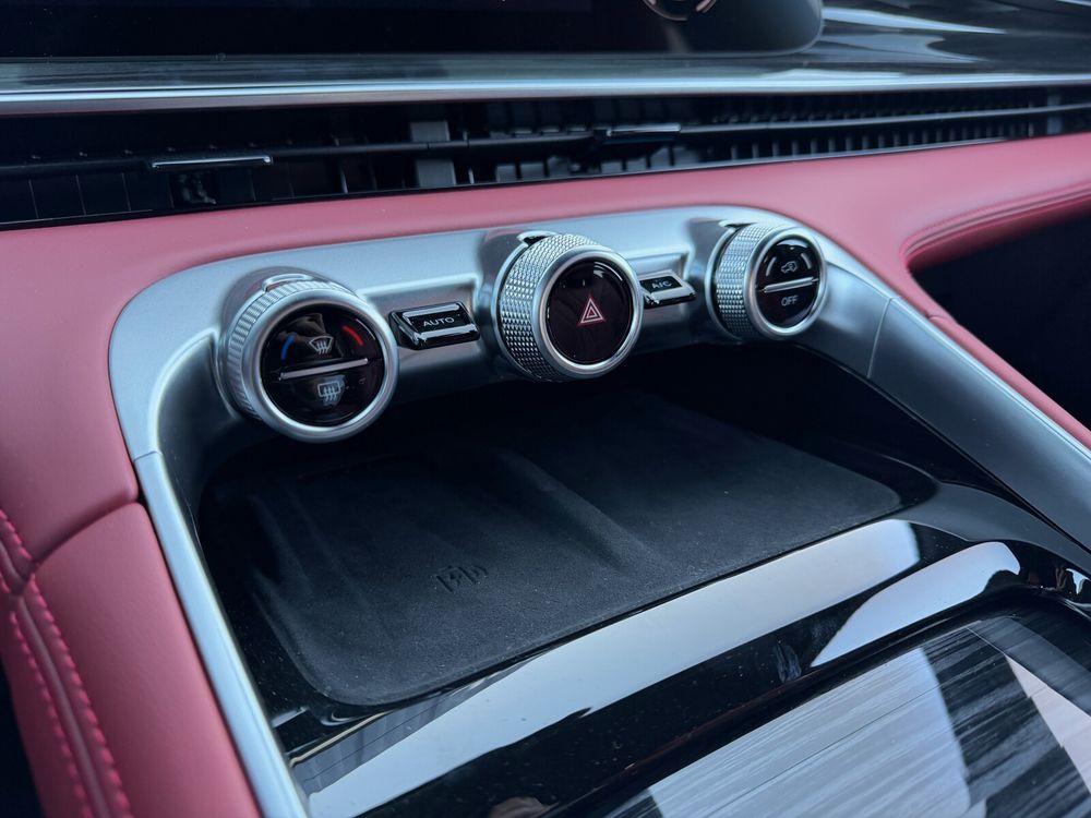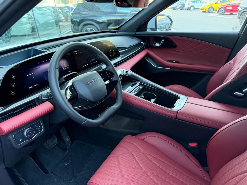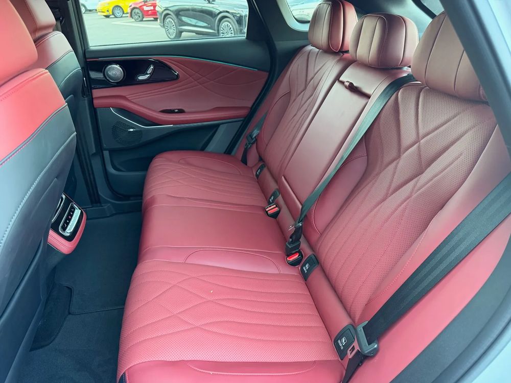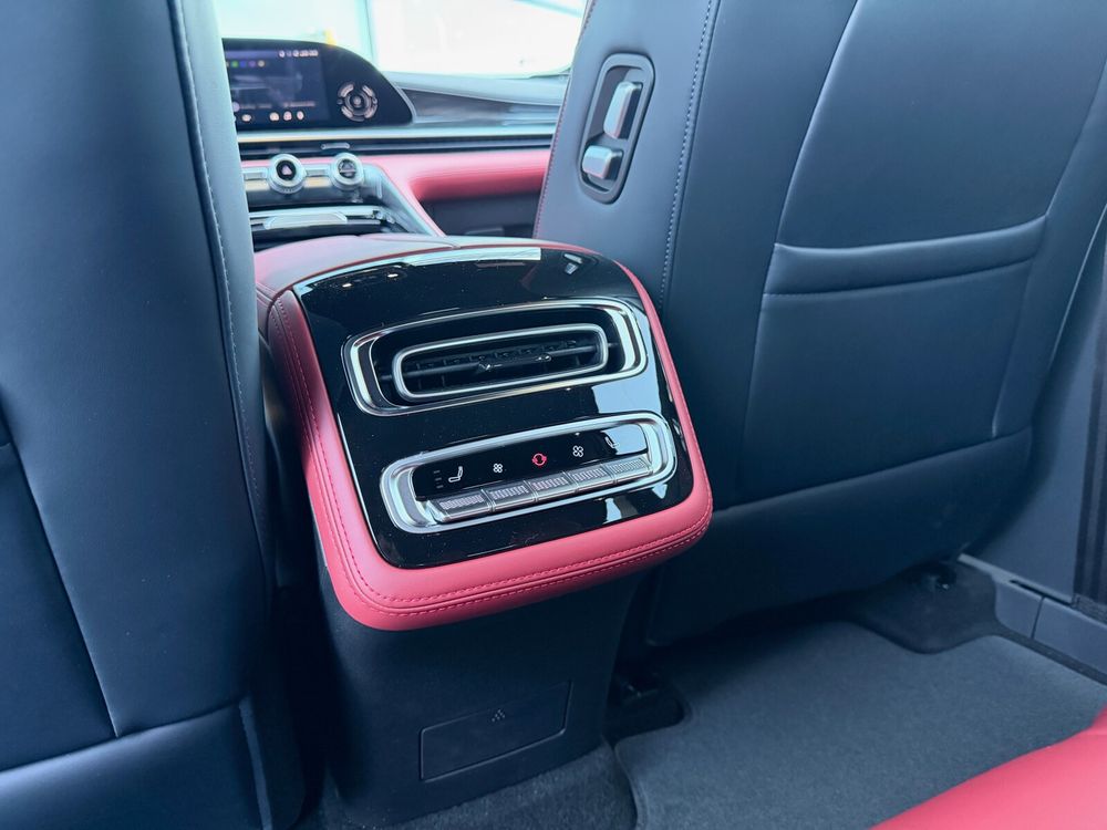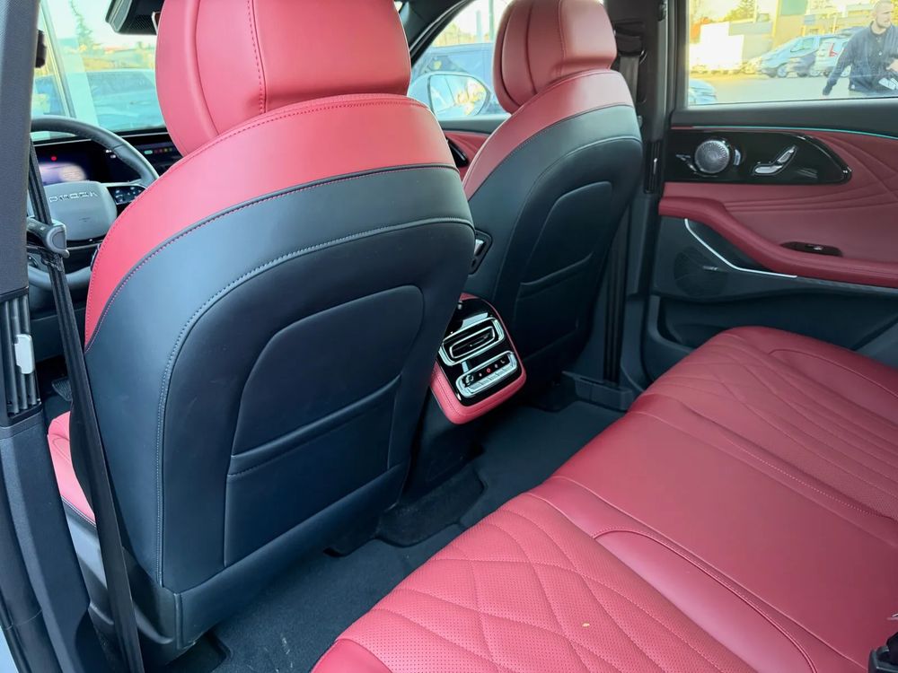 • Fotele przednie z elektryczną regulacją z funkcją podgrzewania, wentylacji i masażu oraz tapicerką ze skóry naturalnej w kolorze czerwonym