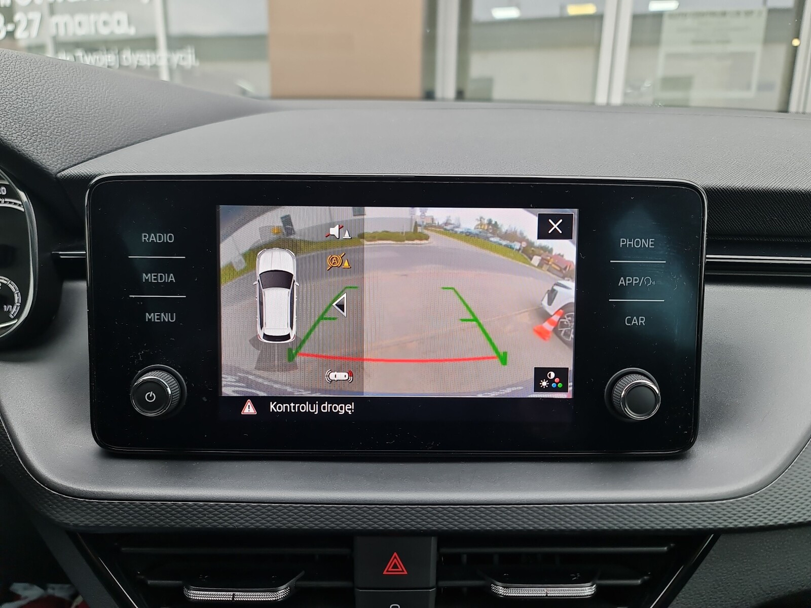 - Kontrola odległości z tyłu (przy parkowaniu)