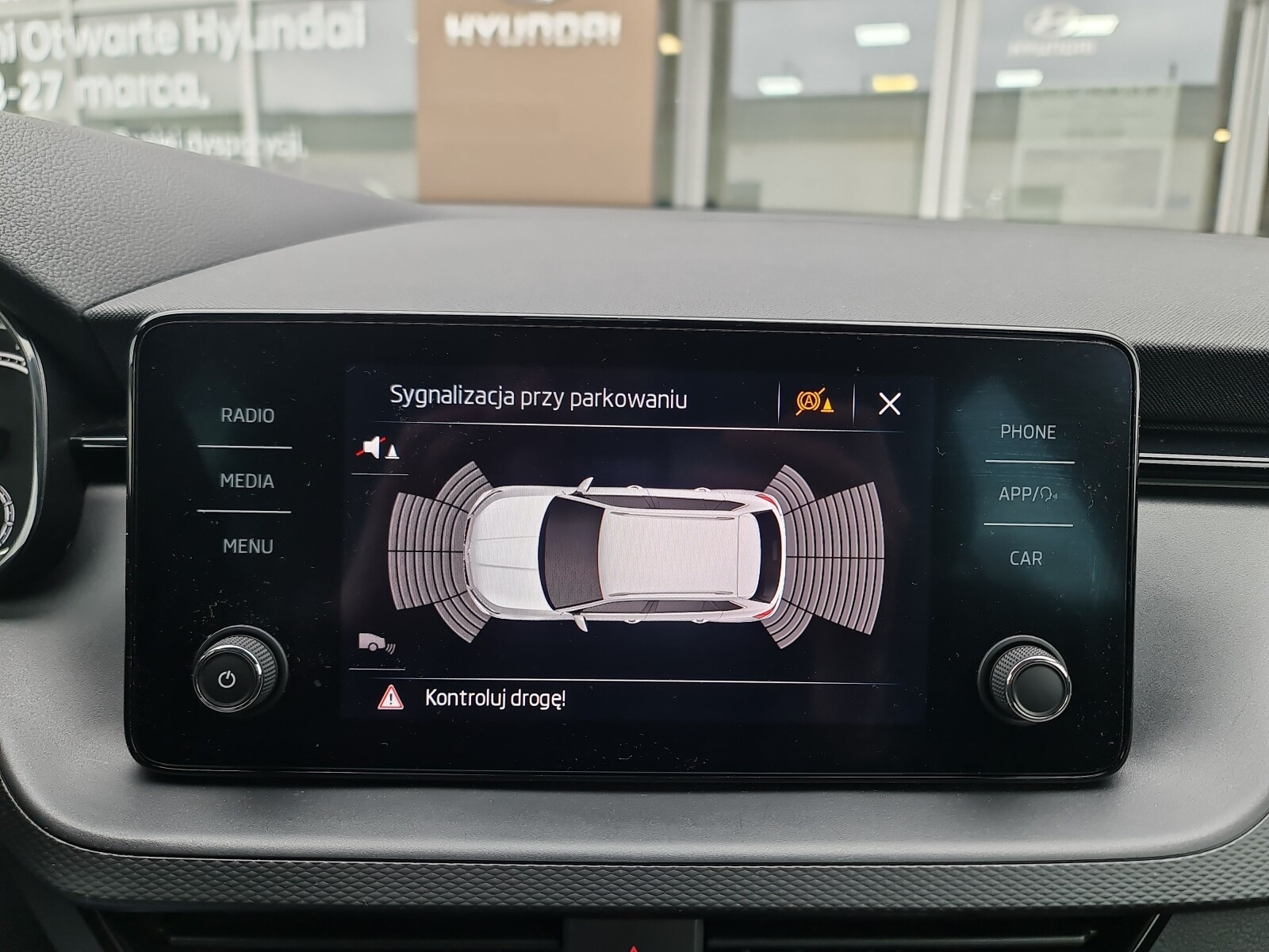 - Kontrola odległości z przodu (przy parkowaniu)